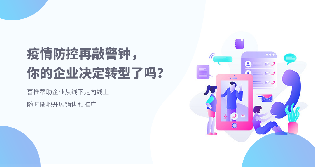 • 喜推帮助企业从线下走向线上,随时随地开展销售和推广